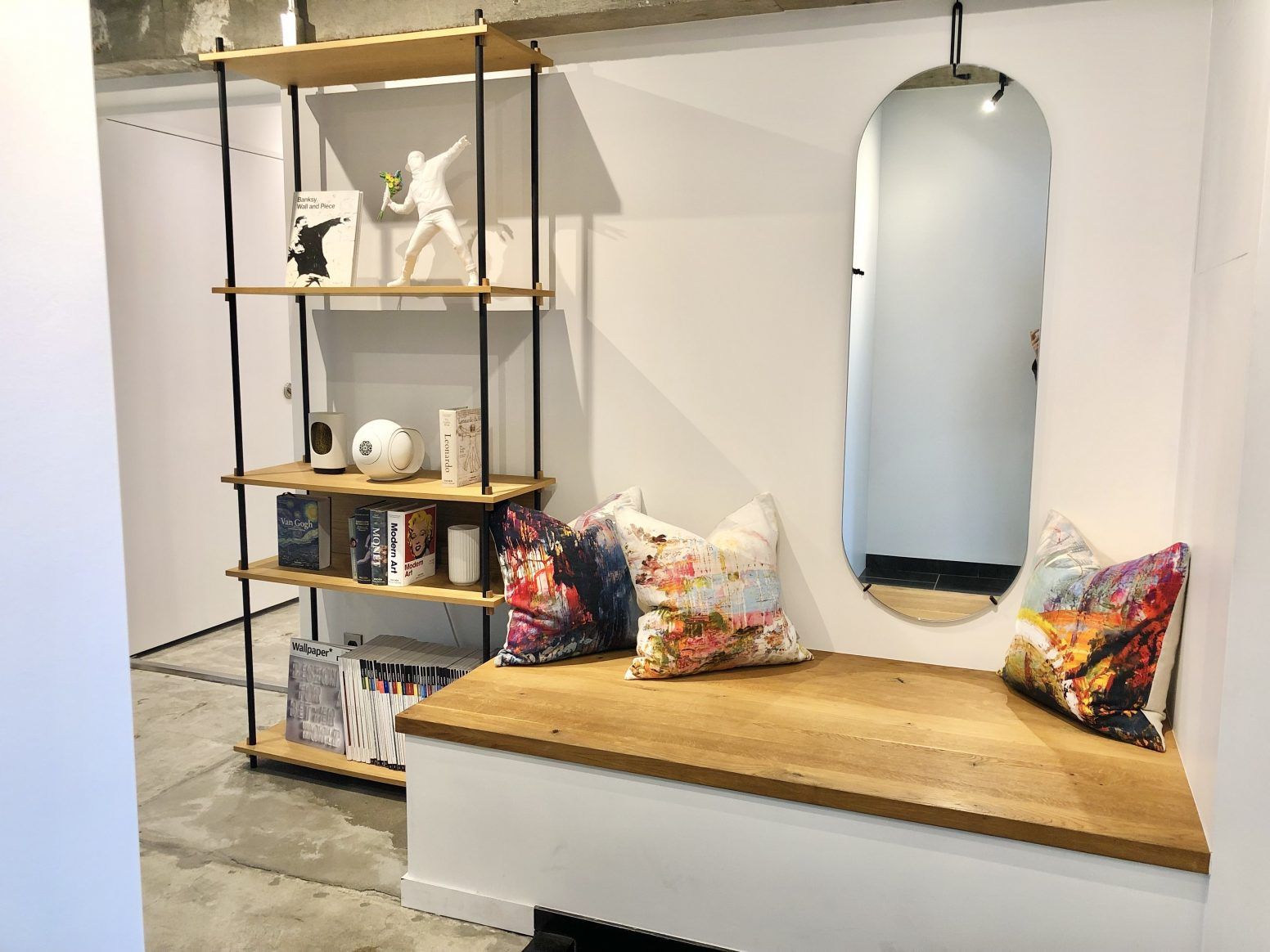 私はアンタイプに入社する前に数社経験しているのですが、これまではいかにも「会社」という雰囲気で棚はスチール製の、いわゆるオフィスキャビネットがずらっと並んでいるオフィスに勤務していたので、初めてこのオフィスに来たときに「なんておしゃれなんだ!」と感動したのを覚えています(笑)