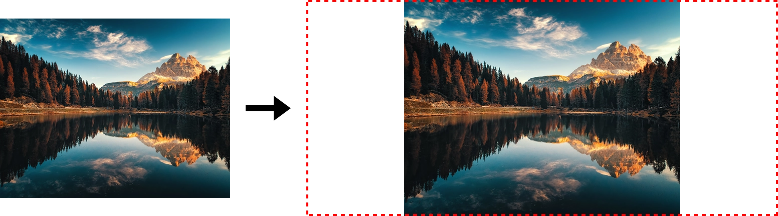 画像は縦横比を維持したまま、表示領域にフィットするように拡大縮小されます。必ず画像全体が見えるように収まるので、表示領域と画像の縦横比が異なる場合は、上下もしくは左右に余白が発生します。