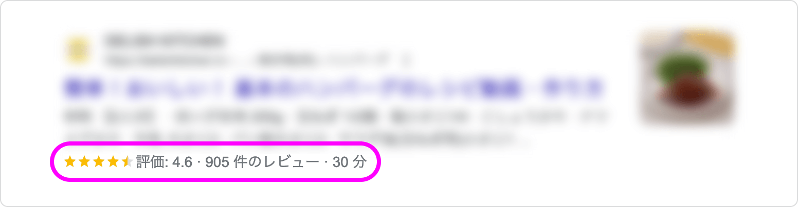 構造化データを使用することで、Googleの検索結果にリッチリザルトが表示されやすくなります。リッチリザルトとは、通常の検索結果よりも視覚的に目立つ情報を表示する機能です。さまざまな形式がありますが、たとえば以下のような例があります。