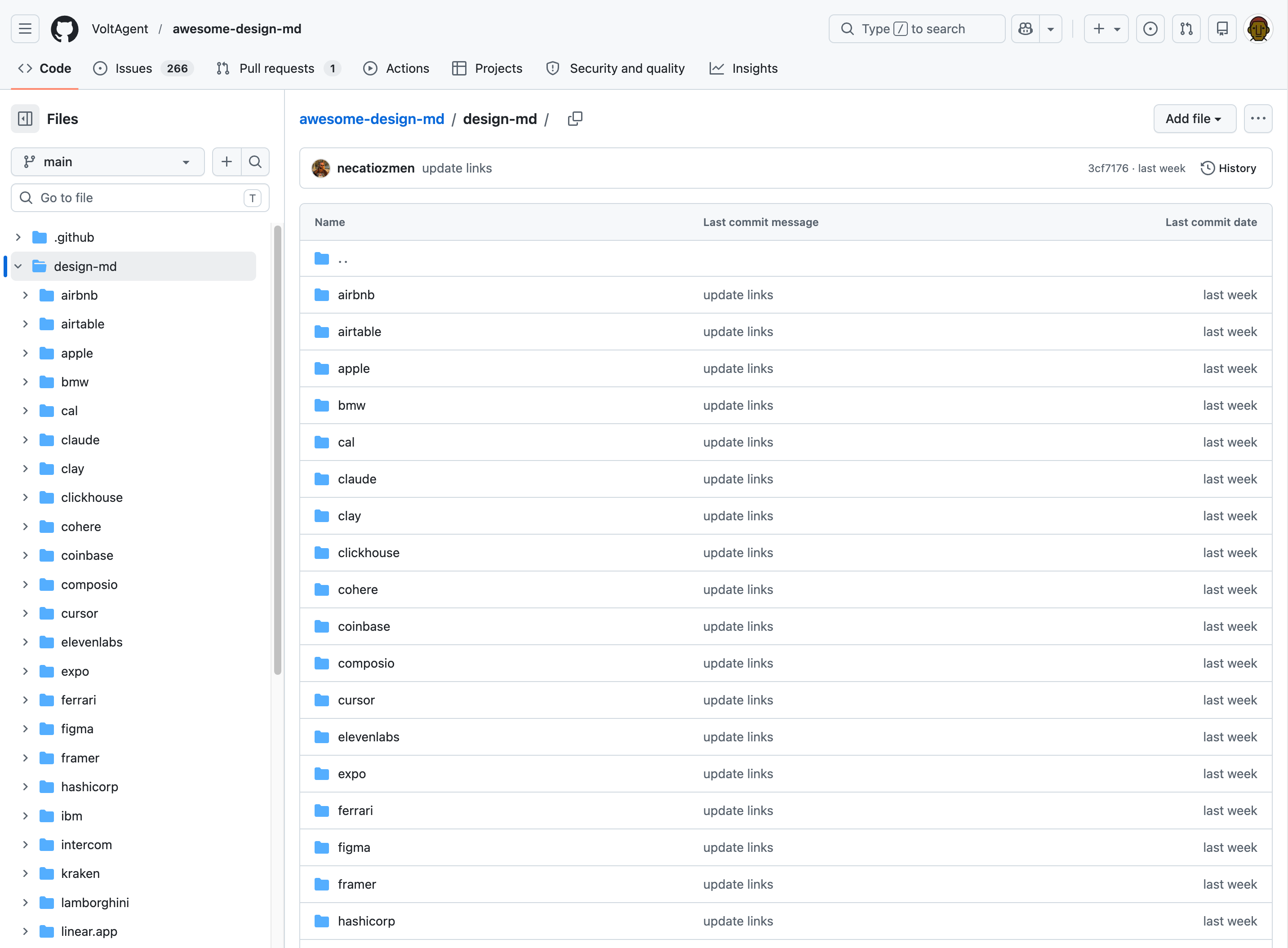 ファイルの実体は、2026年春のリポジトリ刷新以降、GitHub から専用ホスティングサイト getdesign.md に移されました。現在の構成はこうなっています。