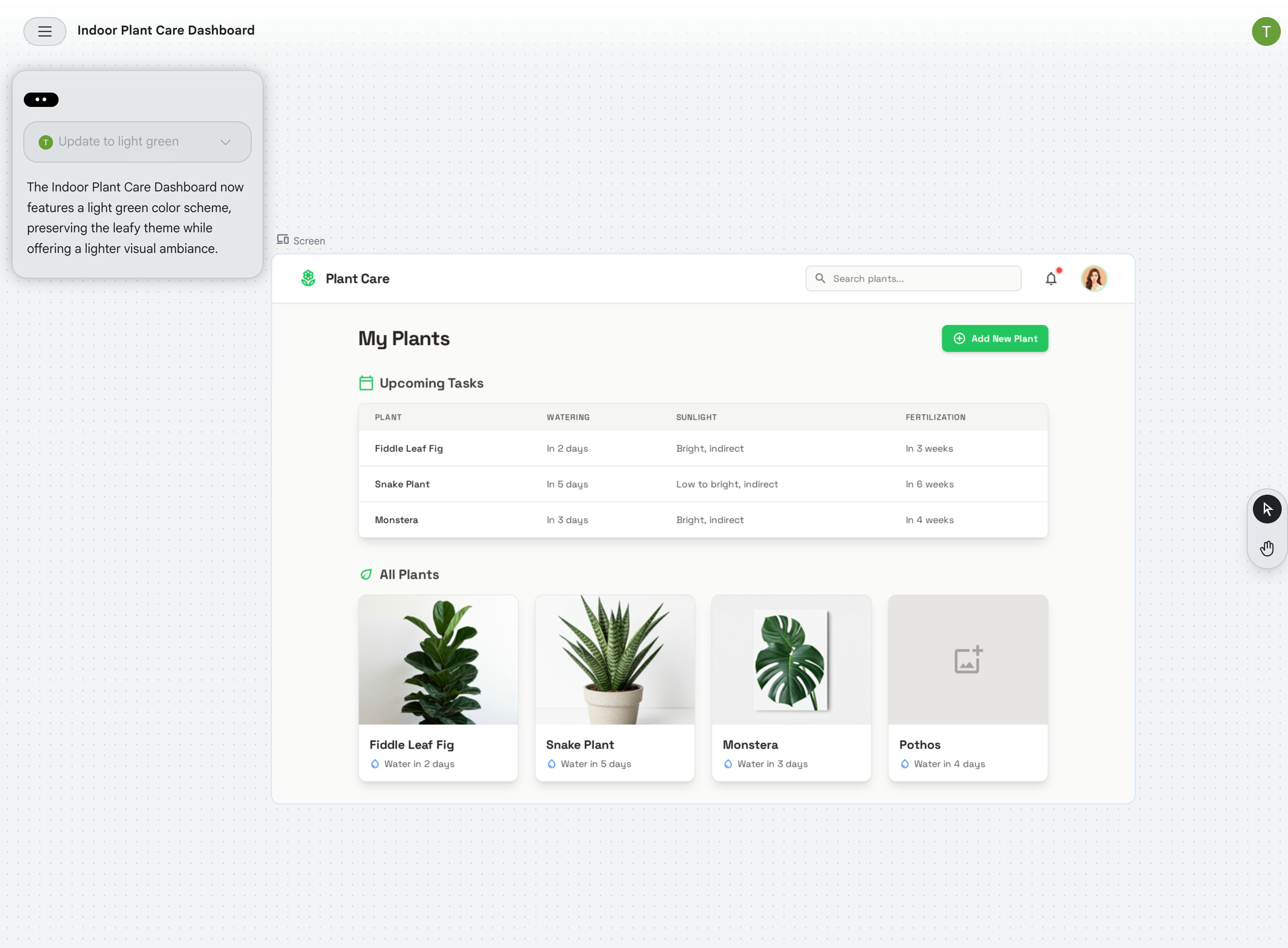 Stitch のキャンバス画面。自然言語からUIモックアップを生成し、DESIGN.md として書き出す機能を持つ。